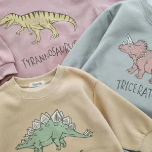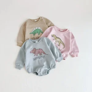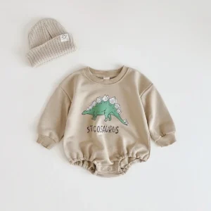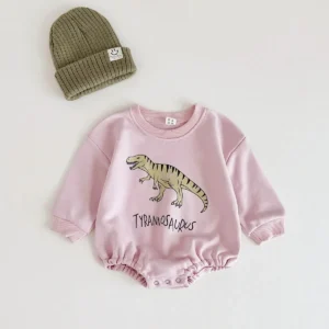 Perfect for Little Dino Lovers: Our Sweatshirt with Romper Closure features an adorable dinosaur print that your little one will love. Crafted from soft, breathable cotton, it’s designed to keep your child cozy and stylish.