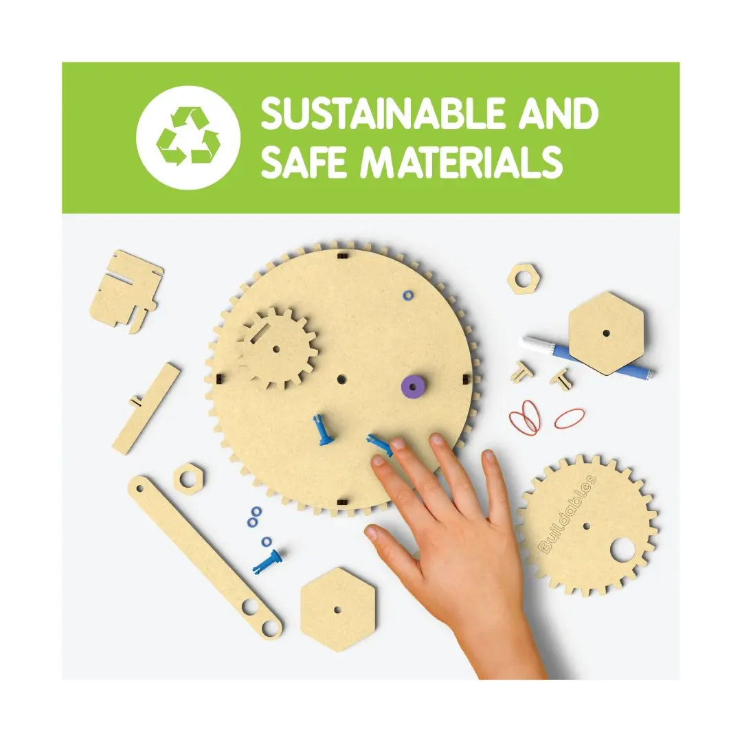 Buildables introduces children to the practical application of STEM fundamentals through hands-on building and creative problem-solving. All components are made from sustainable, splinter-free wood and do not include adhesives to ensure child safety.