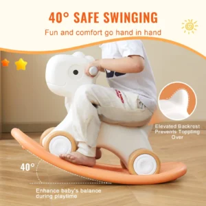 • 3 in 1 functionality: rocking horse, balance board, and ride-on toy with smooth wheels.