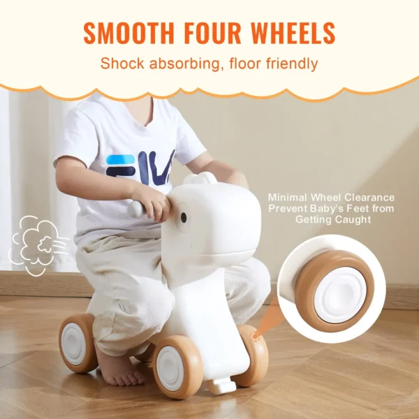 • Four smooth wheels allow for easy transition between rocking and riding modes.