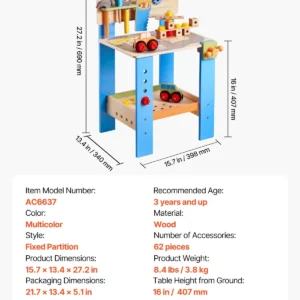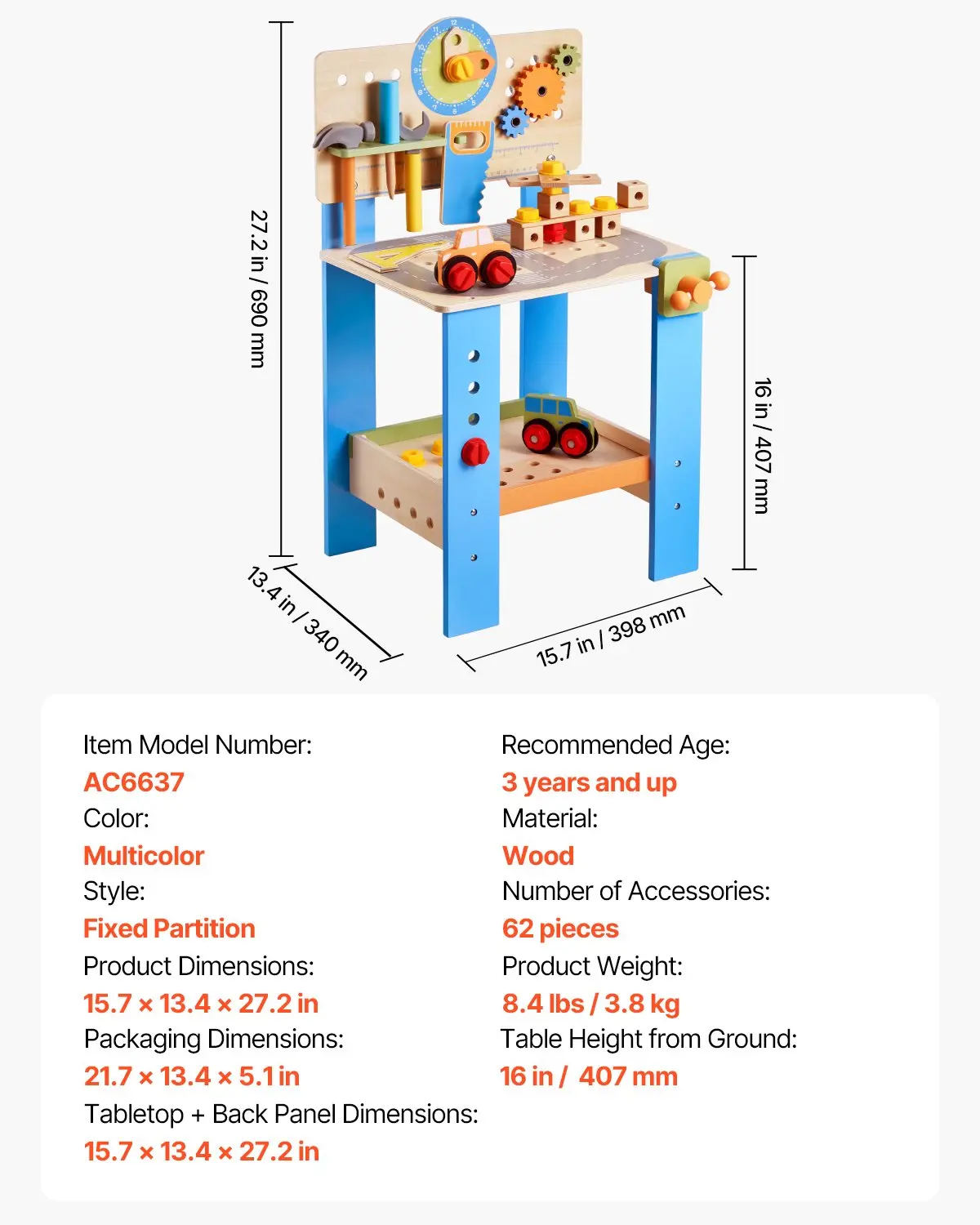 - Durable & Safe: Crafted from high-quality wood, this workbench ensures durability and safety for kids aged 3 years and up.