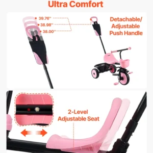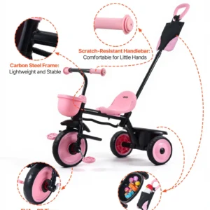 - 2-in-1 Design: Switch effortlessly between a tricycle and a stroller to adapt to your child’s changing needs.